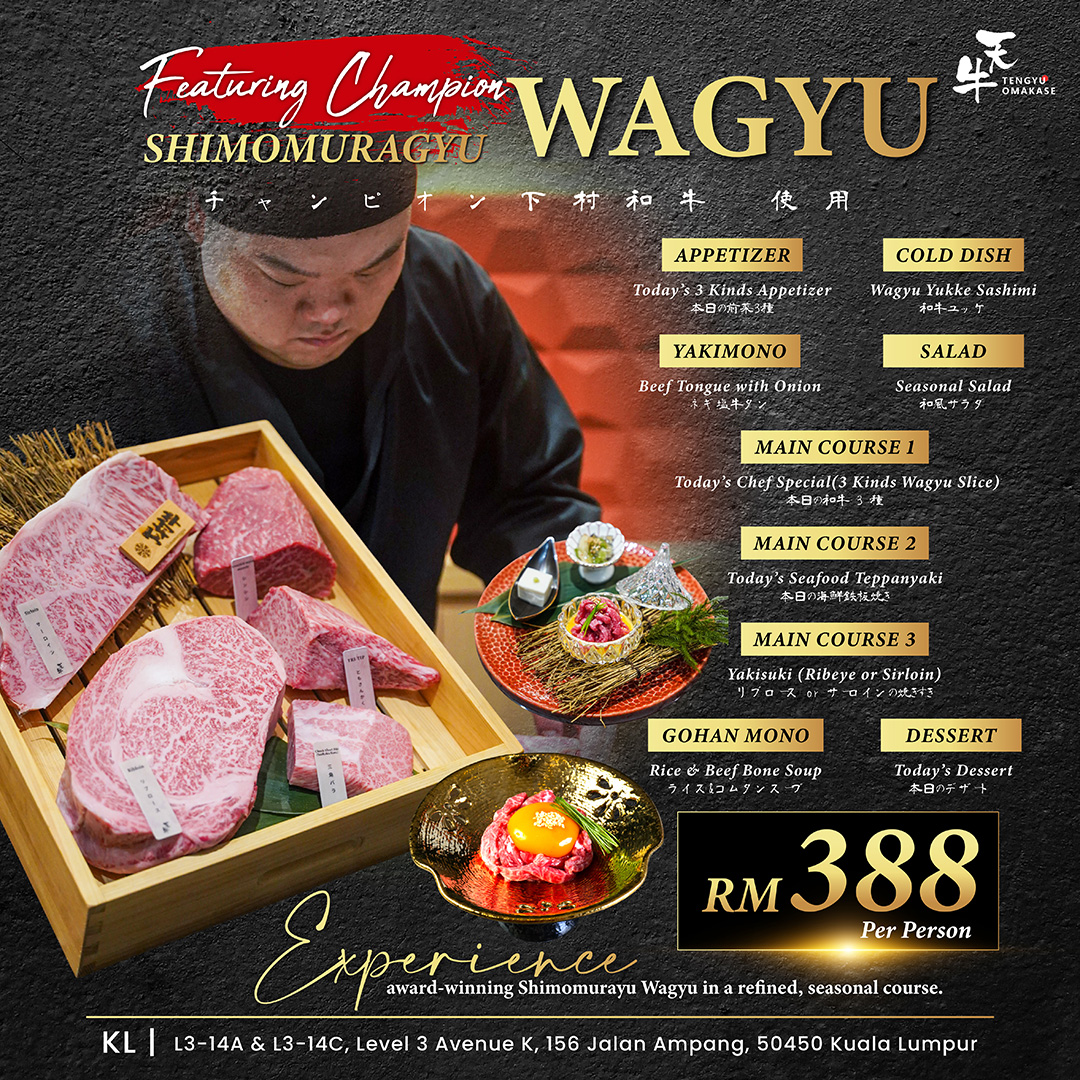 ย Experience the elegance of award-winning ๐บ๐๐๐๐๐๐๐๐๐๐๐ ๐พ๐๐๐๐ at ๐ป๐๐๐๐๐ ๐ถ๐๐๐๐๐๐. This refined seasonal course is thoughtfully curated to highlight the natural richness and fine texture of champion-grade Wagyu, starting from RM388 per person. โจย