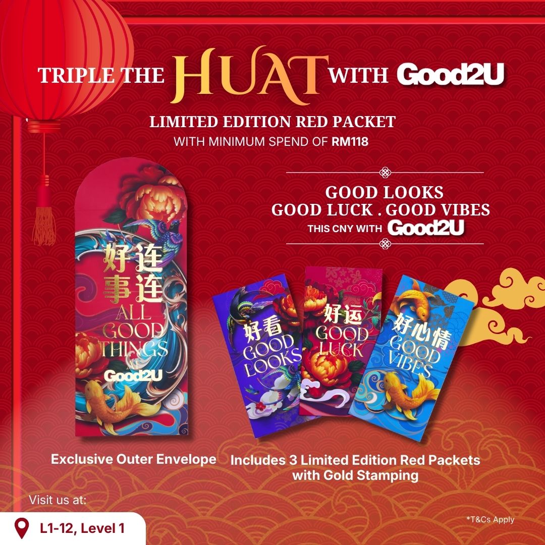 Spend RM118 & above to collect our Limited Edition Red Packet Set, featuring: